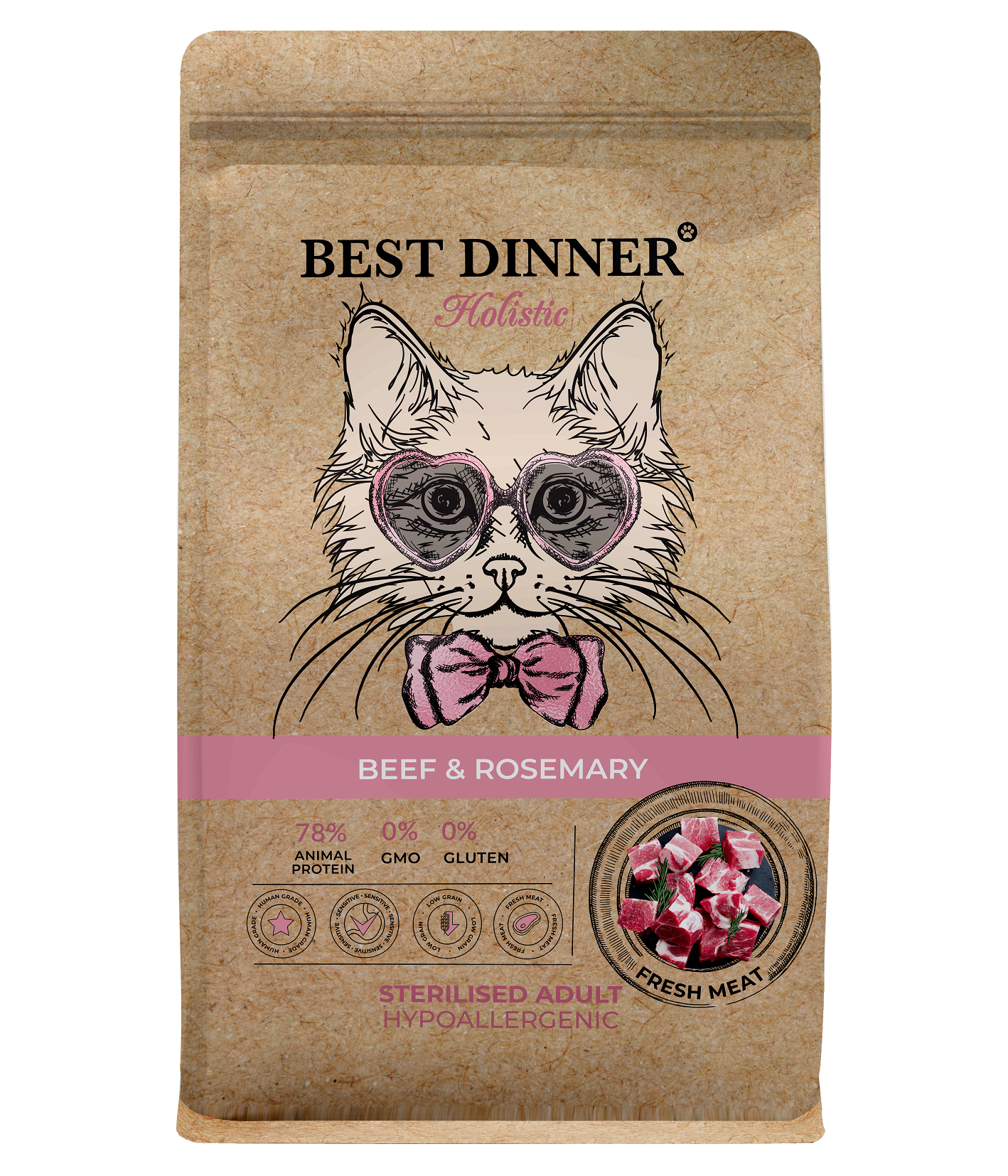 Купить Best Dinner Holistic Hypoallergenic Adult Sterilised Cat BEEF&ROSEMARY Сухой корм для кошек с говядиной и размарином, 400г с доставкой по Нижнему Новгороду в Зоомагазин «Гав-Гав».