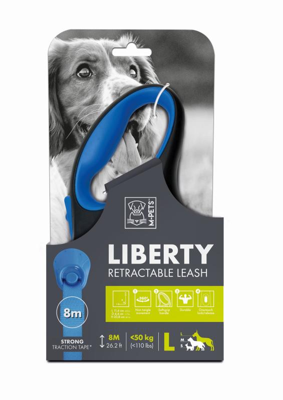 Купить M-PETS поводок-рулетка LIBERTY 8 м, до 50 кг, L, 20.8 x 11.6 x 4.4 см, синий с доставкой по Нижнему Новгороду в Зоомагазин «Гав-Гав».