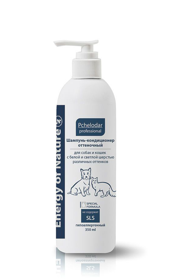 Купить Pchelodar Шампунь-кондиционер оттеночный для собак и кошек с белой и светлой шерстью, 350 мл с доставкой по Нижнему Новгороду в интернет зоомагазине "Гав-Гав".