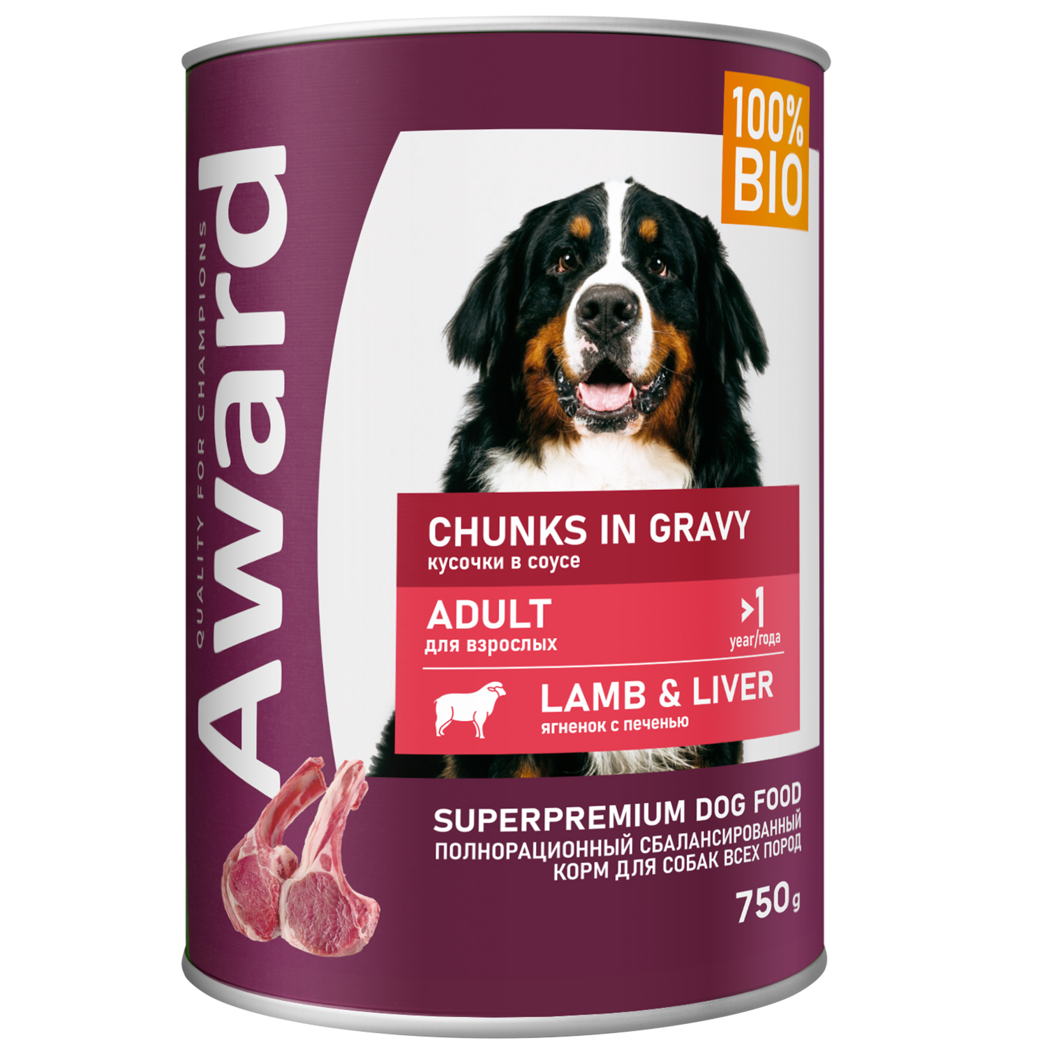 Купить AWARD Влажный корм для взрослых собак, кусочки с ягненком и печенью в соусе 750г с доставкой по Нижнему Новгороду в Зоомагазин «Гав-Гав».