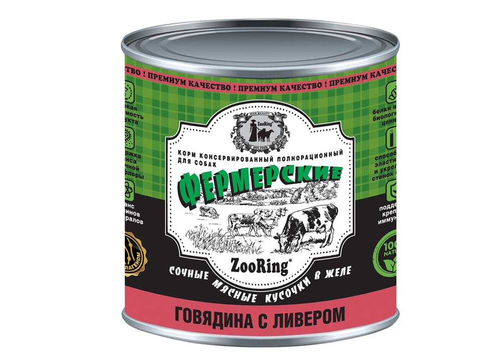 Купить ZooRing Говядина с ливером Корм консервированный для собак Сочные кусочки мяса в желе «Фермерские», 850г с доставкой по Нижнему Новгороду в Зоомагазин «Гав-Гав».
