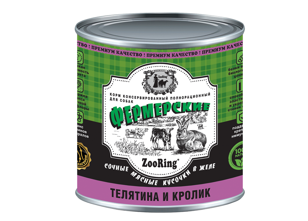 Купить ZooRing Телятина и кролик Корм консервированный для собак Сочные кусочки мяса в желе «Фермерские», 850г с доставкой по Нижнему Новгороду в Зоомагазин «Гав-Гав».