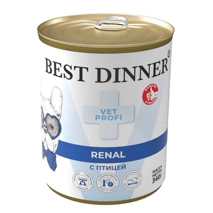 Купить Best Dinner Vet Profi Renal Консервированный корм с птицей, 340г с доставкой по Нижнему Новгороду в Зоомагазин «Гав-Гав».